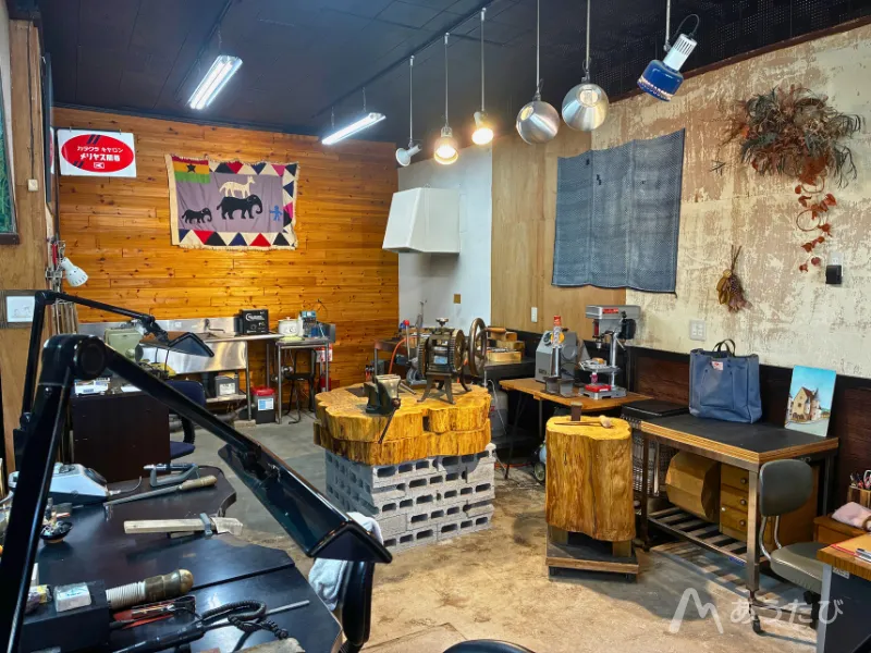 The jewelry studio GURURITO sits at the foot of the Kita-Yatsugatake Mountains in Sakuho. The studio was opened by three artisans who came together through a series of chance connections. Their workshop occupies the former Asakawa Clothing Store, a shop that was long loved by the local community. Instead of furnishing the space with new items, the team gathered tools and furniture passed down by local residents. They restored these pieces and built the workshop with their own hands, creating a warm space filled with history and personal stories.