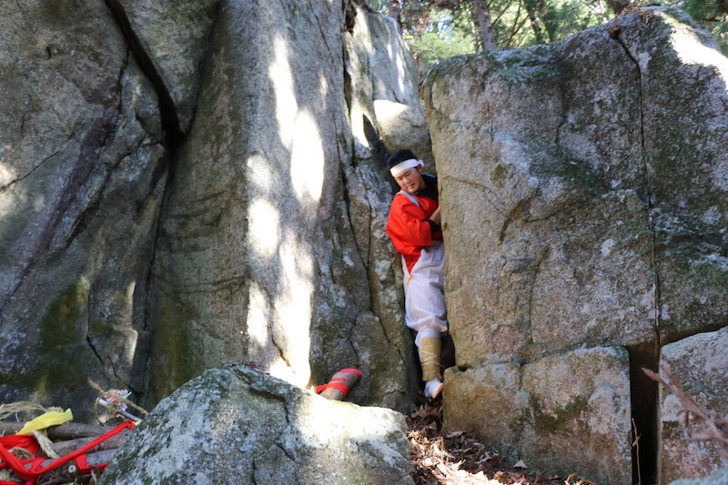 One of the coming-of-age rituals performed during the festival is called “Tainai Kuguri,” or “passing through the womb.”